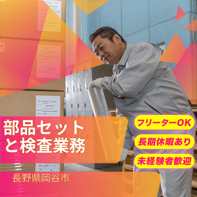 ※月収内訳/時給1320円×8時間×21日+残業手当 交通費 支給あり 応募の流れ 本ページ内<応募する>ボタンより、必要項目をご入力の上、ご応募ください。 勤務地 【勤務地】長野県岡谷市- 勤務時間 【勤務地】【日勤】
