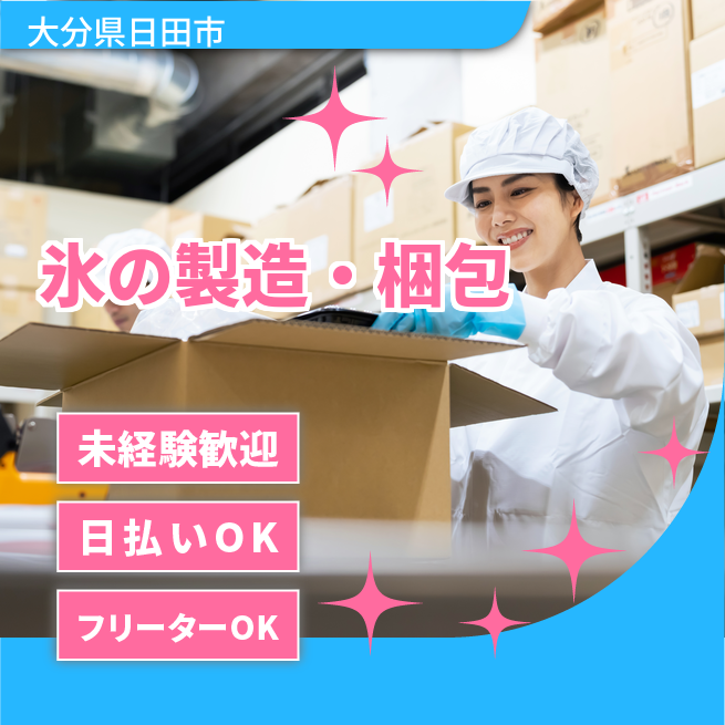 給与詳細 月収例 270,000円 日給例 10,000円 勤務地 大分県日田市 仕事内容 【氷の製造・梱包】