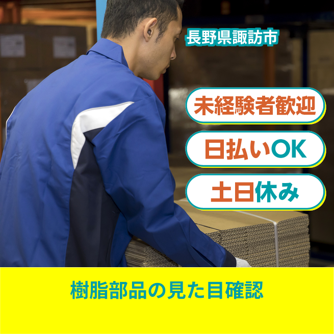 ◆日払い・仮払いOK(アプリでカンタン申請!) 交通費 支給あり 応募の流れ 本ページ内<応募する>ボタンより、必要項目をご入力の上、ご応募ください。 勤務地 【勤務地】長野県諏訪市四賀 勤務時間 【勤務地】8:15~17:15(休憩60分)