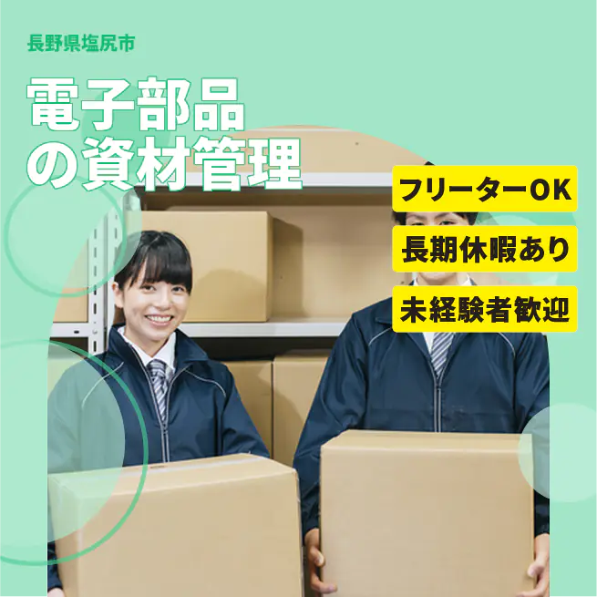 ・受動喫煙対策あり、詳細は面接時にお伝えします。 公開日 2025年10月01日 【電子部品の材料受け入れ・出荷準備】