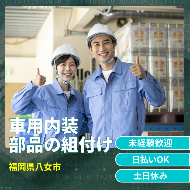 給与詳細 月収例 290,000円 時給例 1,200円 勤務地 福岡県八女市 仕事内容 【車用内装部品の組付け・機械加工・検査】