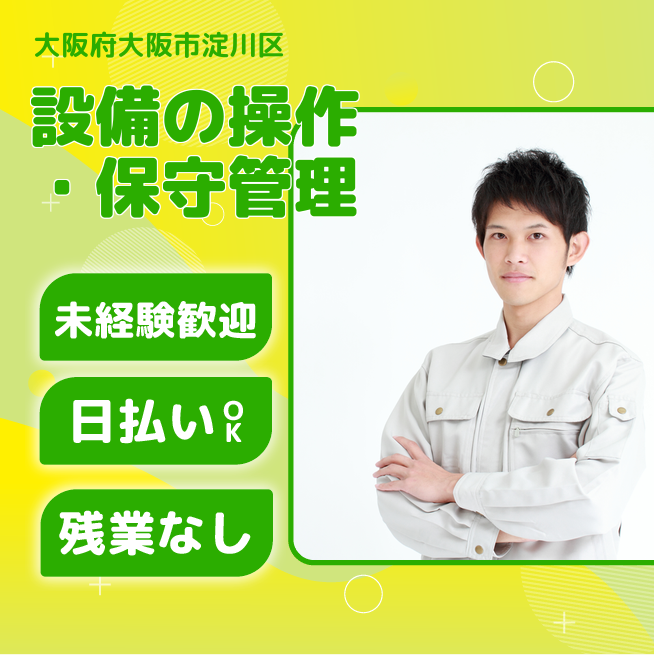 給与詳細 月収例 200,000円 日給例 10,400円 勤務地 大阪府大阪市淀川区 仕事内容 【設備の操作・保守管理】