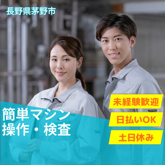 給与詳細 月収例 220,000円 日給例 10,800円 勤務地 長野県茅野市 仕事内容 【業務内容】自動車金属部品の製造における機械操作と検査作業