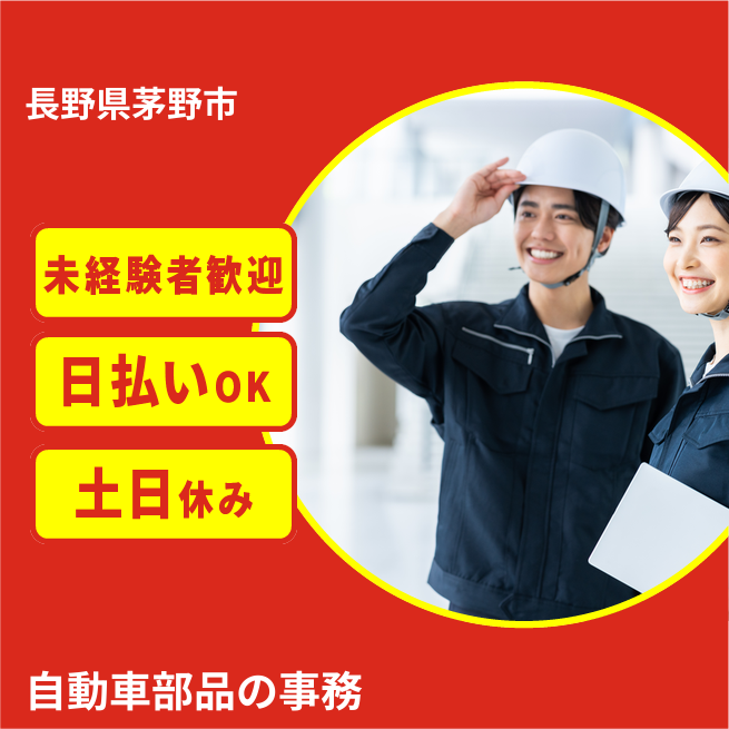 ※月収内訳/時給1350円×7時間50分×21日+残業手当 交通費 支給あり 応募の流れ 本ページ内<応募する>ボタンより、必要項目をご入力の上、ご応募ください。 勤務地 【勤務地】長野県茅野市- 勤務時間 【勤務地】【日勤】