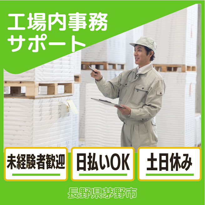 ※月収内訳/時給1350円×7時間50分×21日+残業手当 交通費 支給あり 応募の流れ 本ページ内<応募する>ボタンより、必要項目をご入力の上、ご応募ください。 勤務地 【勤務地】長野県茅野市- 勤務時間 【勤務地】【日勤】