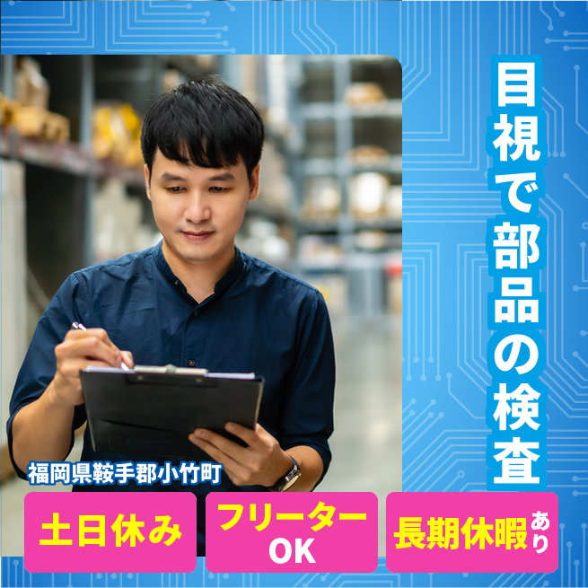 給与詳細 月収例 210,000円 時給例 1,210円 勤務地 福岡県鞍手郡小竹町 仕事内容 【目視で部品のチェック】