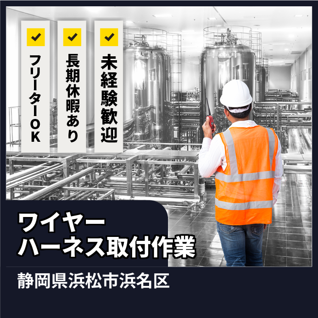 ◆日払い・仮払いOK(アプリでカンタン申請!) 交通費 支給あり 応募の流れ 本ページ内<応募する>ボタンより、必要項目をご入力の上、ご応募ください。 勤務地 【勤務地】静岡県浜松市浜名区- 勤務時間 【勤務地】8:00~17:05(休憩65分)