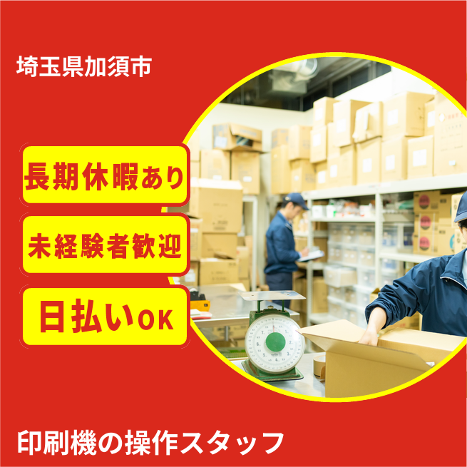 ・受動喫煙対策あり、詳細は面接時にお伝えします。 公開日 2025年10月01日 【印刷機の操作・検品・箱詰め】