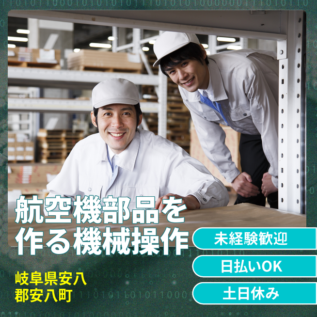 給与詳細 月収例 260,000円 日給例 10,800円 勤務地 岐阜県安八郡安八町 仕事内容 【航空機部品を作る機械操作・組立】