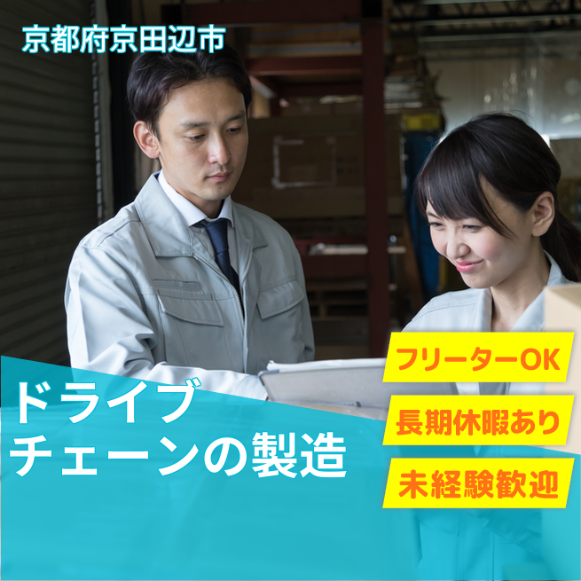 給与詳細 月収例 250,000円 日給例 10,800円 勤務地 京都府京田辺市 仕事内容 【ドライブチェーンの製造(組立・検査・運搬など)】