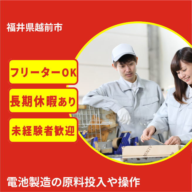 給与詳細 月収例 200,000円 時給例 1,210円 勤務地 福井県越前市 仕事内容 【日勤のみ/女性大歓迎/駅チカ便利/原料の投入やボタン操作】