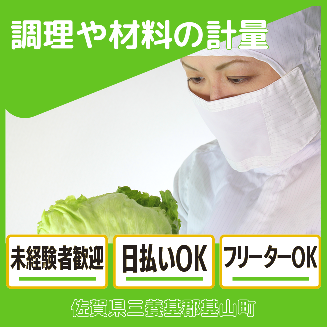 給与詳細 月収例 260,000円 時給例 1,160円 勤務地 佐賀県三養基郡基山町 仕事内容 【未経験OK/日勤or夜勤/お休みの希望日を申請OK/調理や材料の計量】