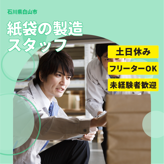 ・受動喫煙対策あり、詳細は面接時にお伝えします。 公開日 2025年10月01日 【紙袋の製造】