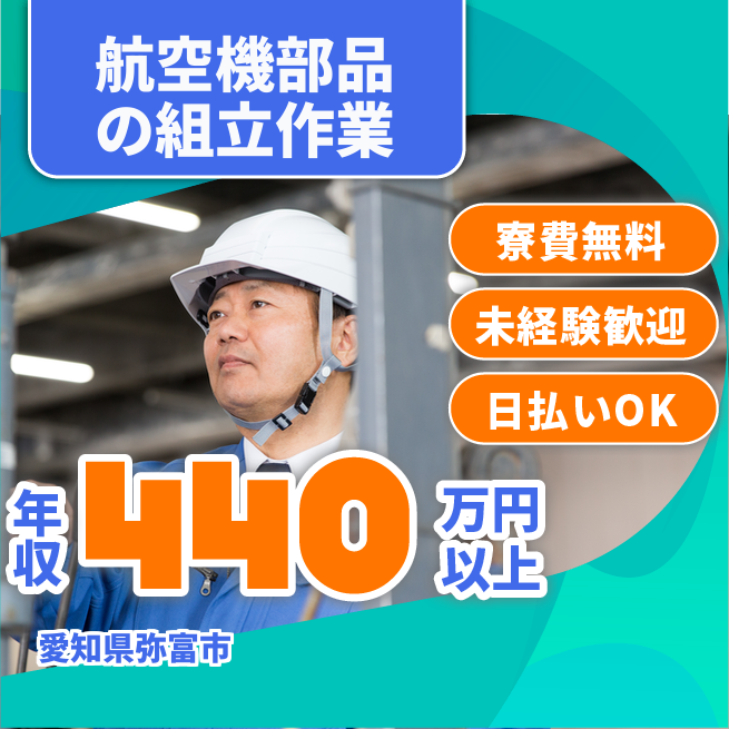 給与詳細 年収例 4,440,000円 月収例 370,000円 勤務地 愛知県弥富市 仕事内容 【航空機パーツの組立】