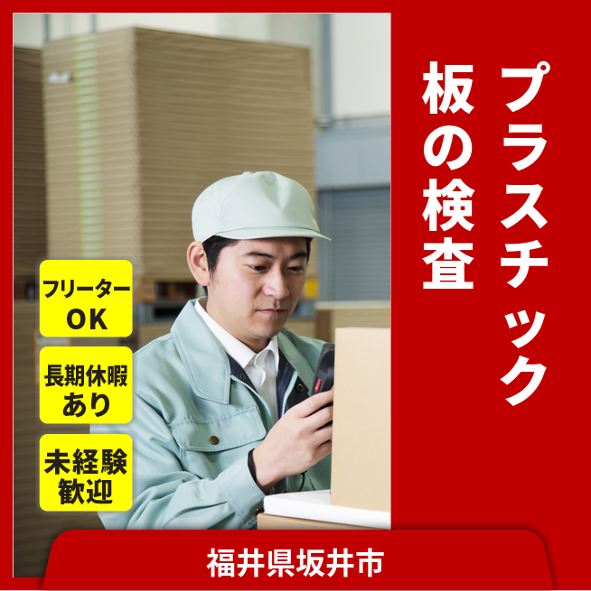・受動喫煙対策あり、詳細は面接時にお伝えします。 公開日 2025年10月01日 【プラスチック板の検査】