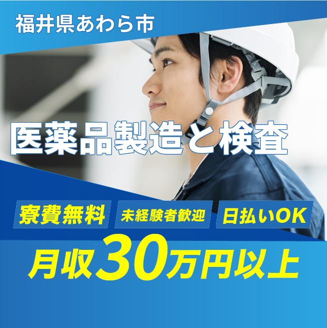 ※通常62,000円の寮費が就業期間中無料! 【医薬品を作る機械操作・検査・梱包】