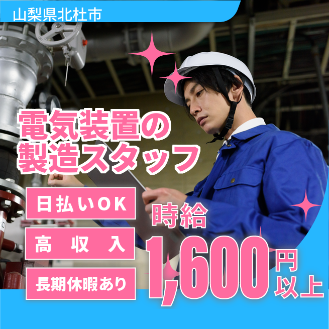 給与詳細 月収例 280,000円 時給例 1,600円 勤務地 山梨県北杜市 仕事内容 【業務内容】