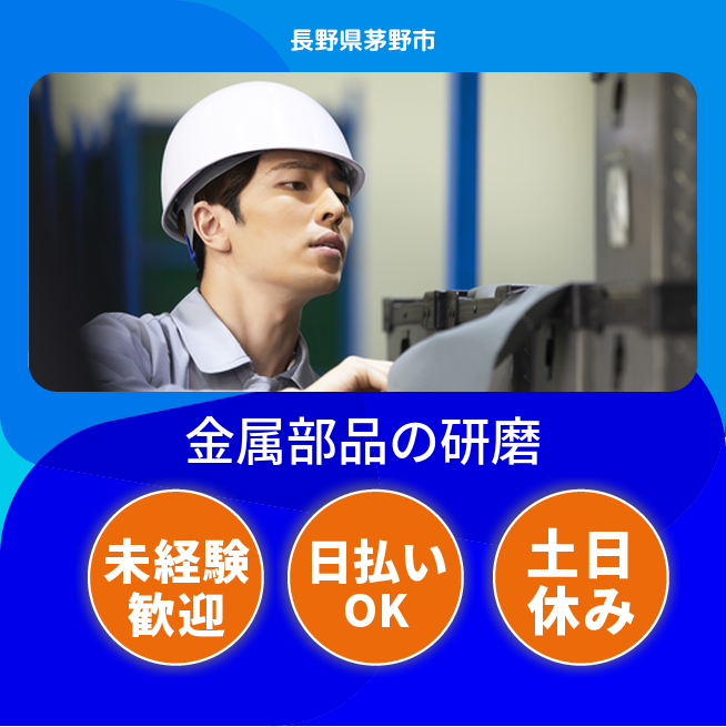 給与詳細 月収例 250,000円 日給例 10,400円 勤務地 長野県茅野市 仕事内容 【金属部品の研磨(機械の操作)】