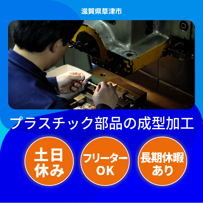 給与詳細 月収例 240,000円 日給例 11,200円 勤務地 滋賀県草津市 仕事内容 【プラスチック部品の成型加工】