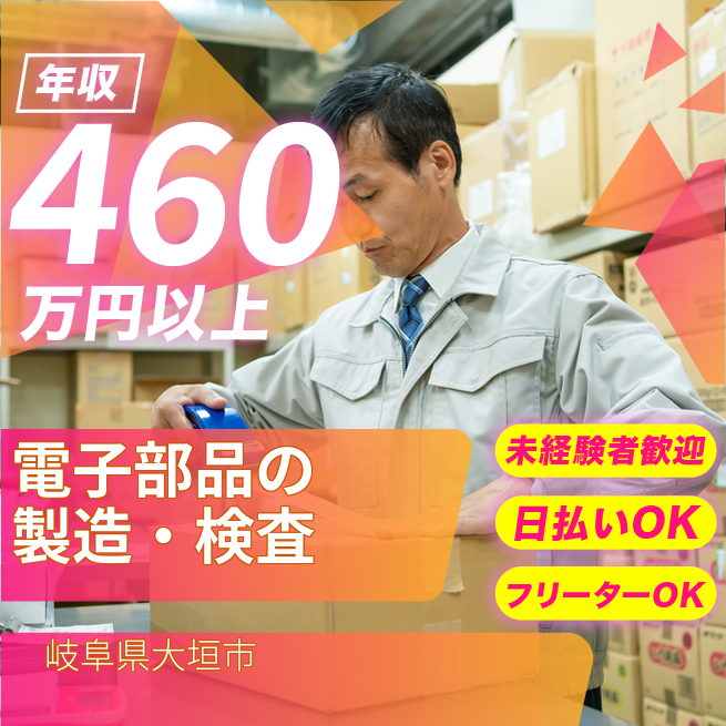 給与詳細 年収例 4,680,000円 月収例 390,000円 勤務地 岐阜県大垣市 仕事内容 【電子部品の製造・検査】