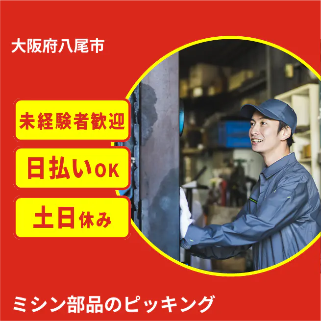 給与詳細 月収例 240,000円 日給例 10,320円 勤務地 大阪府八尾市 仕事内容 【業務内容】ミシンの組立作業