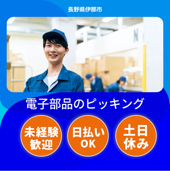 ◆日払い・仮払いOK(アプリでカンタン申請!) 交通費 支給あり 応募の流れ 本ページ内<応募する>ボタンより、必要項目をご入力の上、ご応募ください。 勤務地 【勤務地】長野県伊那市上の原 勤務時間 【勤務地】8:20~17:20(休憩60分)
