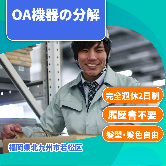給与詳細 月収例 175,000円 時給例 1,150円 勤務地 福岡県北九州市若松区 仕事内容 コピー機やプリンター等のOA機器の分解・分別作業(※ドライバー等の工具を使用しての分解)