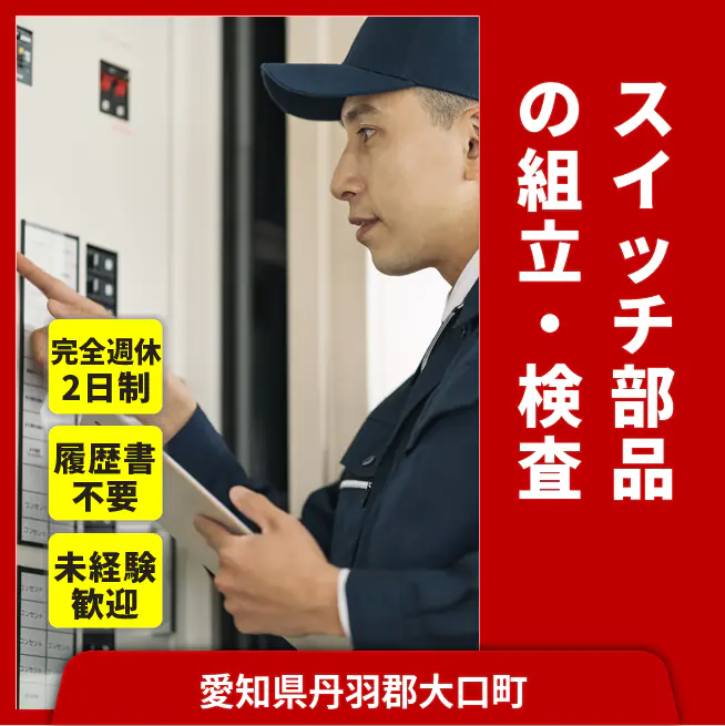 - 自動車用スイッチ(エンジンスイッチなど)の組立作業を行う