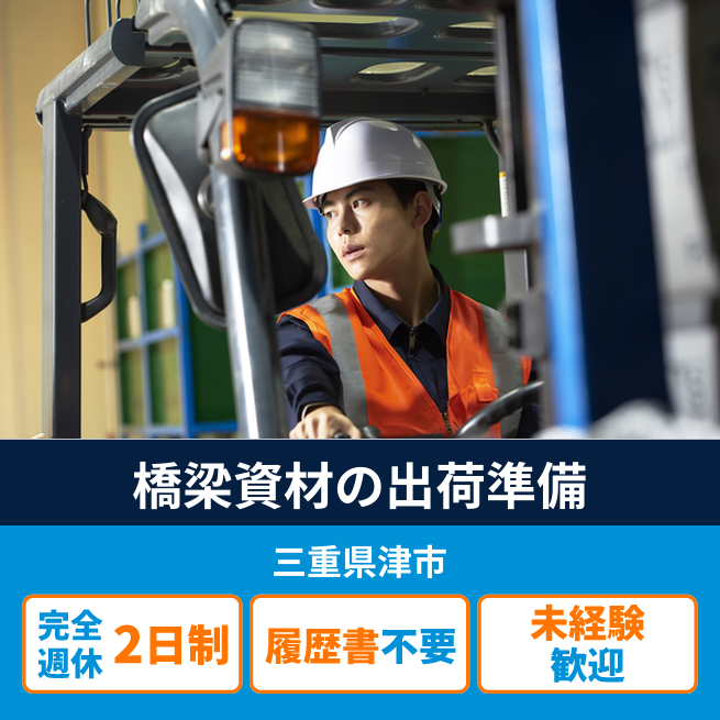 橋梁資材の出荷準備、包装作業、フォークリフトでの積み込み業務