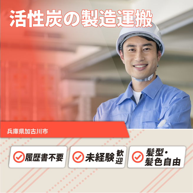 就業場所:全国(派遣先)/就業範囲:派遣先業務全般(詳細は就業条件明示書で明示する) 工場内での、活性炭製造業務(オペレーター)