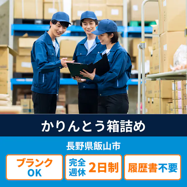 給与詳細 月収例 184,000円 時給例 1,150円 勤務地 長野県飯山市 仕事内容 【業務内容】かりんとうの製造と箱詰め作業
