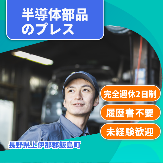 給与詳細 月収例 234,000円 時給例 1,200円 勤務地 長野県上伊那郡飯島町 仕事内容 製品のプレス作業