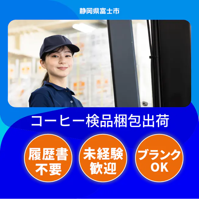 給与詳細 月収例 270,000円 日給例 13,500円 勤務地 静岡県富士市 仕事内容 出来上がったコーヒー製品の検品、梱包、出荷業務、カウンターフォークリフトを使用した運搬作業など
