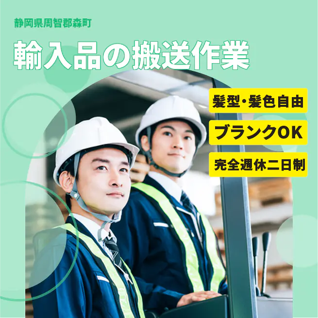 給与詳細 月収例 225,000円 日給例 11,250円 勤務地 静岡県周智郡森町 仕事内容 【業務内容】輸入された自動車部品の箱を安全にセットし、出荷準備を行う業務