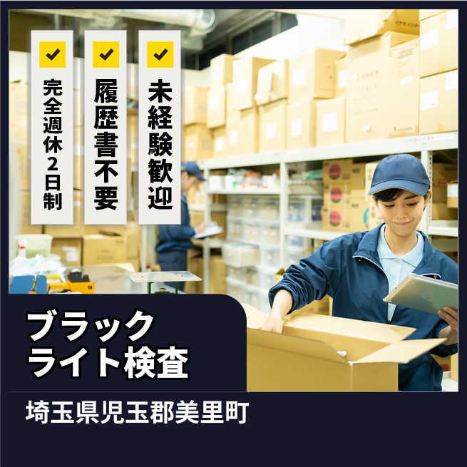 給与詳細 月収例 282,750円 日給例 11,600円 勤務地 埼玉県児玉郡美里町 仕事内容 【業務内容】自動車部品の検査と金型の清掃を行います。