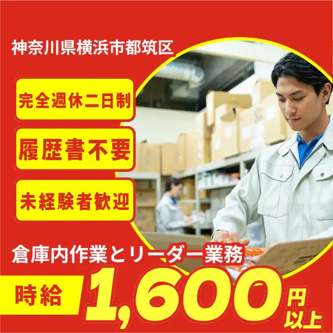 給与詳細 月収例 300,000円 時給例 1,650円 勤務地 神奈川県横浜市都筑区 仕事内容 【業務内容】物流倉庫での商品管理とリーダーシップ業務