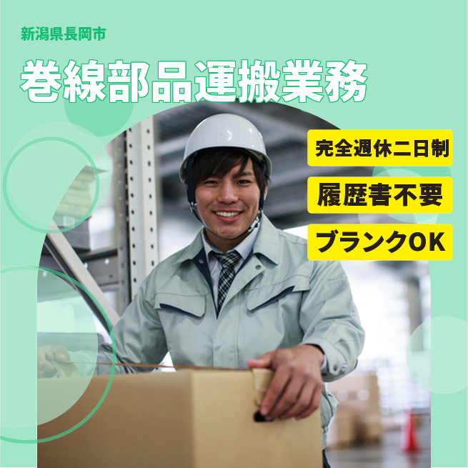 週休2日で安心【巻線部品運搬業務】