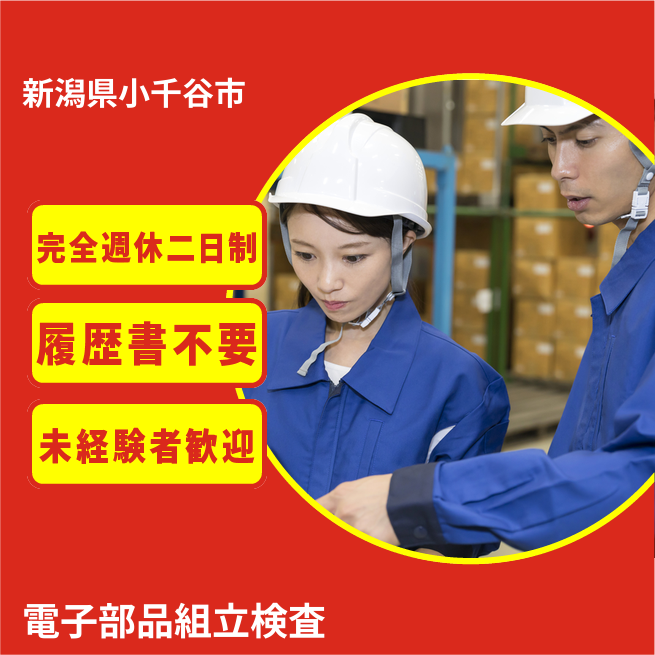 給与詳細 月収例 250,000円 日給例 12,500円 勤務地 新潟県小千谷市 仕事内容 クリーンルーム内で電子部品を製造するお仕事です。