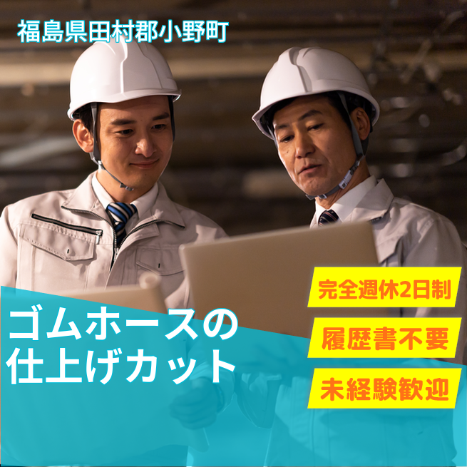 給与詳細 月収例 180,000円 時給例 1,100円 勤務地 福島県田村郡小野町 仕事内容 【業務内容】ゴムホースの仕上げカット作業
