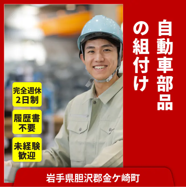 給与詳細 月収例 227,500円 時給例 1,600円 勤務地 岩手県胆沢郡金ケ崎町 仕事内容 【業務内容】自動車内装部品の組付けと加工