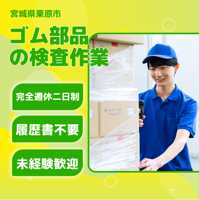 給与詳細 月収例 214,500円 時給例 1,100円 勤務地 宮城県栗原市 仕事内容 【業務内容】ゴム製品の検査と仕上げ作業
