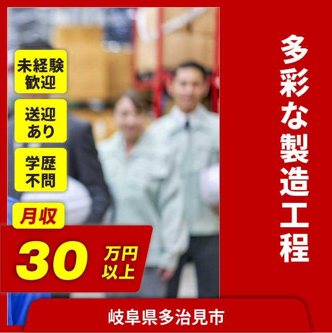給与詳細 月収例 330,750円 日給例 12,000円 勤務地 岐阜県多治見市 仕事内容 【業務内容】