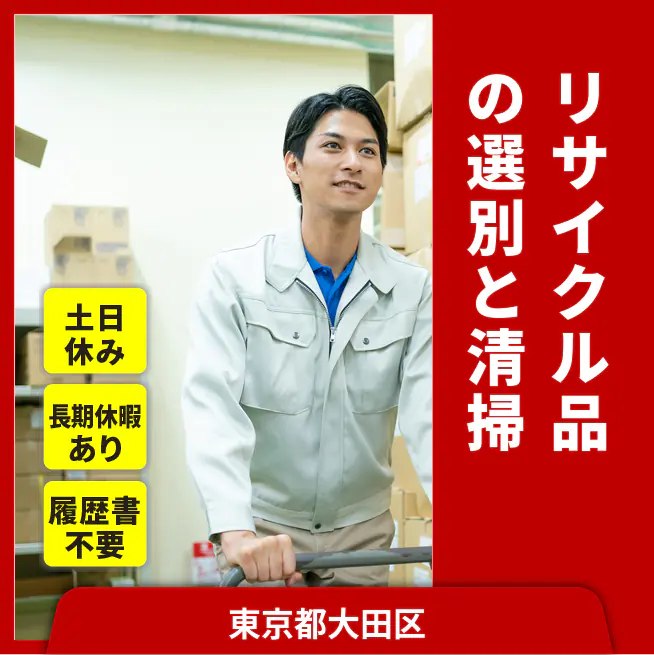 安定職場で働こう【リサイクル品の選別と清掃】