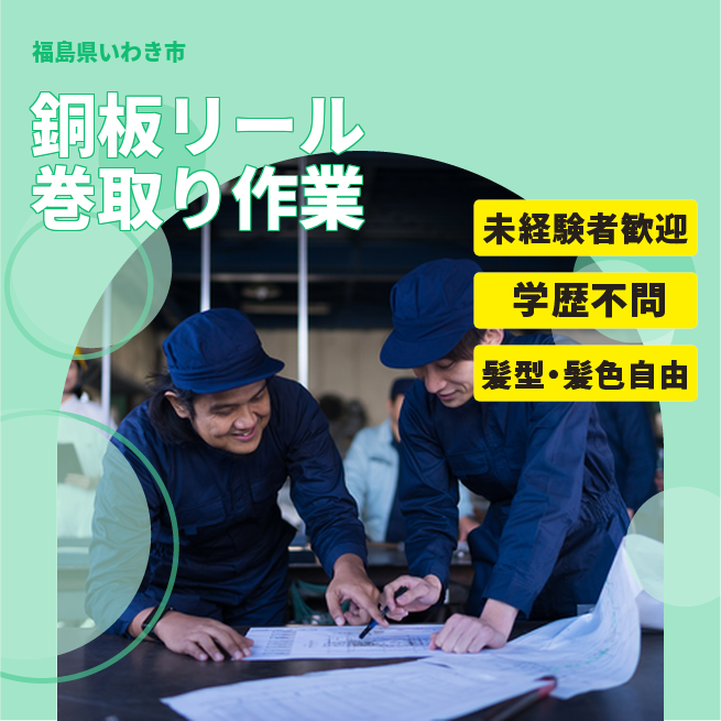 給与詳細 月収例 206,953円 時給例 1,120円 勤務地 福島県いわき市 仕事内容 プレス加工された薄い銅板をプラスチック製リールに巻き取る機械の操作をして頂きます。