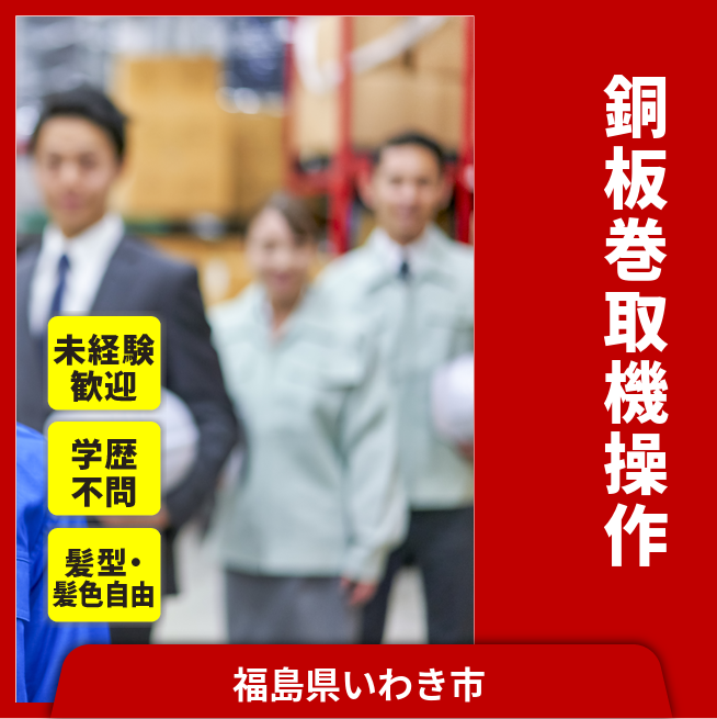 時給例:1120円 交通費 支給なし 応募の流れ 本ページ内<応募する>ボタンより、必要項目をご入力の上、ご応募ください。 勤務地 【勤務地】福島県いわき市好間工業団地 勤務時間 【勤務地】【2交替】