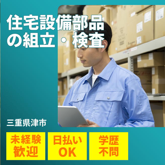 給与詳細 月収例 211,380円 日給例 10,000円 勤務地 三重県津市 仕事内容 【住宅設備部品の製造】