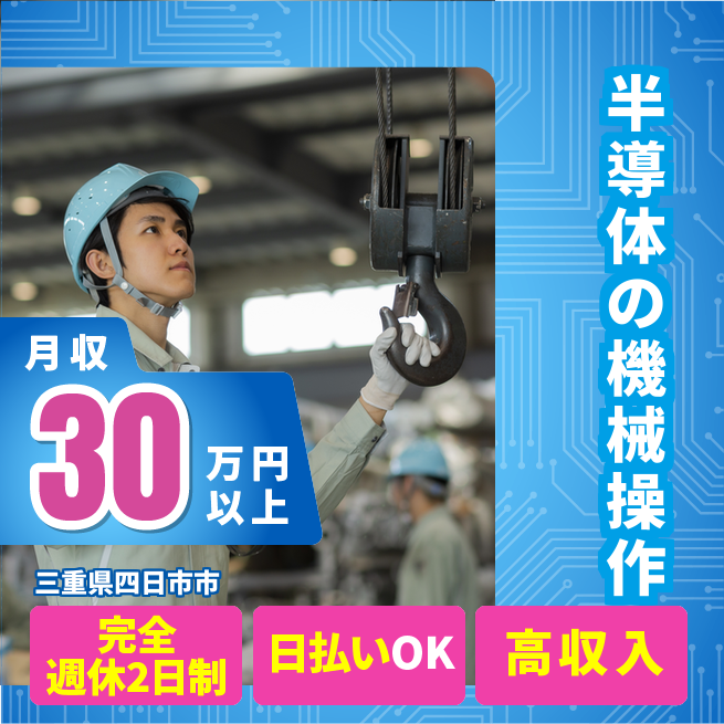 給与詳細 月収例 310,000円 時給例 1,600円 勤務地 三重県四日市市 仕事内容 半導体後工程作業(オペレーター)