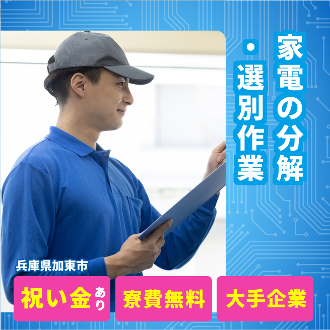 給与詳細 月収例 180,000円 時給例 1,125円 勤務地 兵庫県加東市 仕事内容 【エアコンや冷蔵庫のネジ外し】