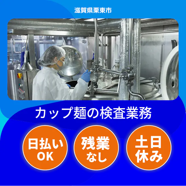 ※就労期間中適用(規定あり) 交通費 支給あり 応募の流れ 本ページ内<応募する>ボタンより、必要項目をご入力の上、ご応募ください。 勤務地 【勤務地】滋賀県栗東市下鈎 勤務時間 【勤務地】17:00~1:40(休憩45分+小休憩15分×2回)