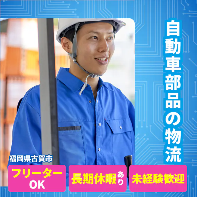 給与詳細 月収例 240,000円 時給例 1,200円 勤務地 福岡県古賀市 仕事内容 【業務内容】自動車部品の入出荷作業